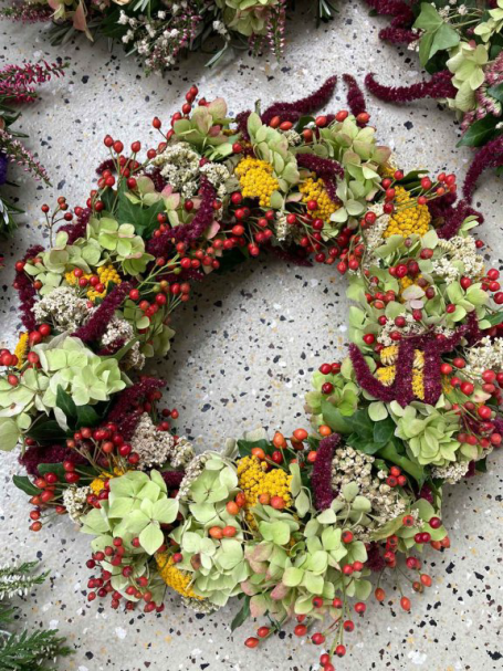Ebenso das fachmännische, wunderschöne Kränze binden. Unser 2. Vorstand Iris Sprenger gönnte sich keine Pause um interessierte anzuleiten oder selbst unterschiedlichste Kränze zu fertigen.